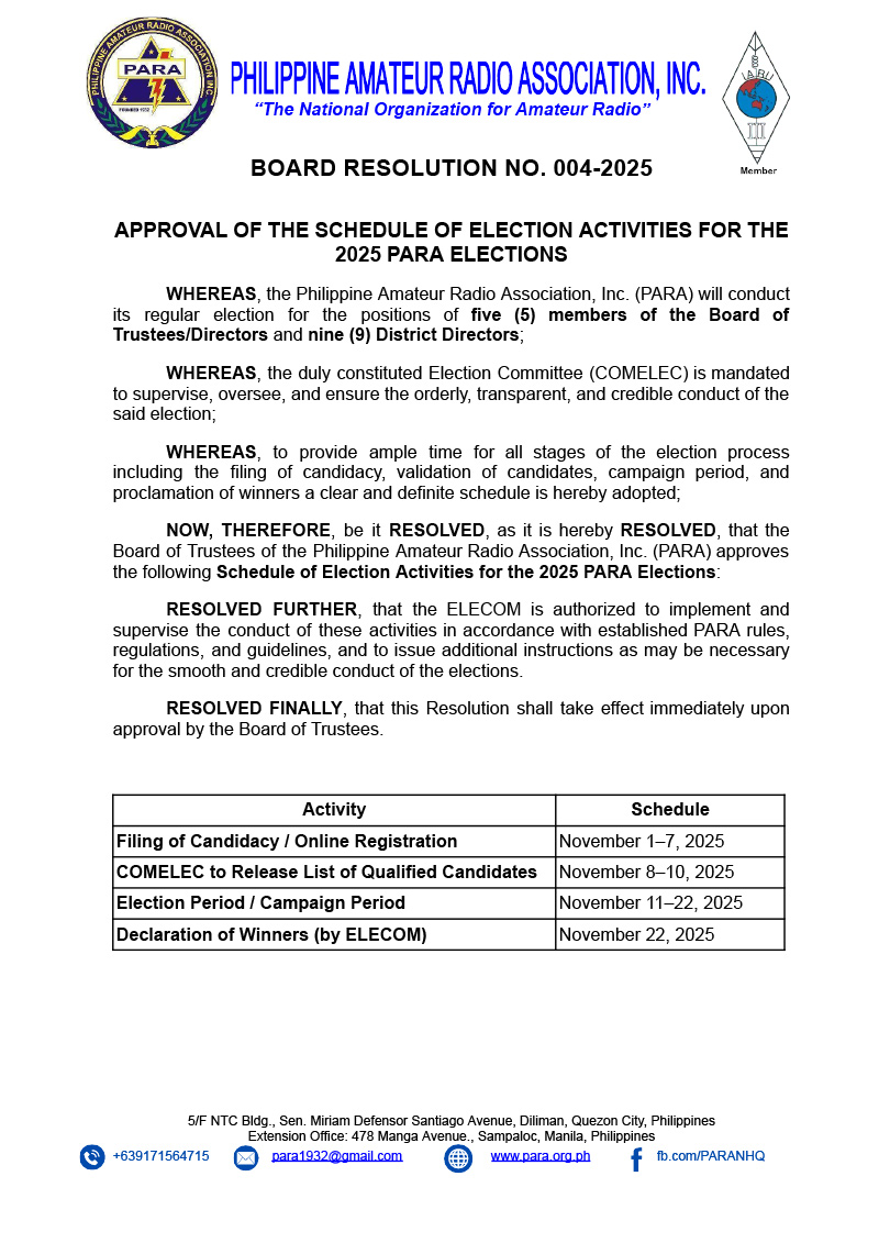 - Have no pending administrative or disciplinary case, and no outstanding financial liabilities with Philippine Amateur Radio Association, Inc